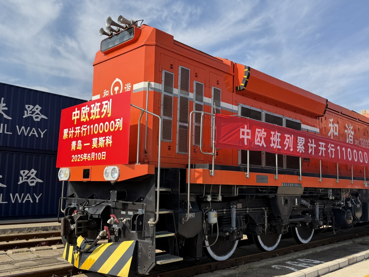 A freight train loaded with home appliances departed from Qingdao of East China's Shandong province on Tuesday morning, pushing the total number of China-Europe freight train trips past 110,000, according to the China State Railway Group, the service operator.