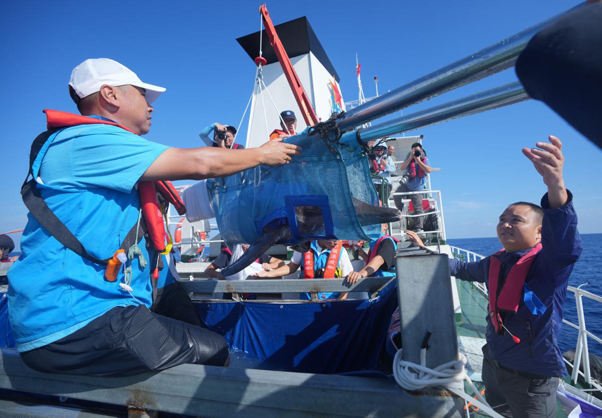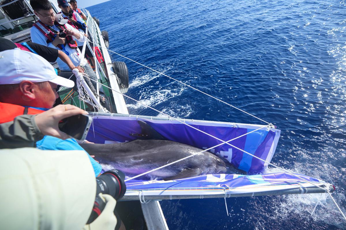 Nearly 100 people attended a release ceremony nearly 70 nautical miles from Sanya on Sunday, World Oceans Day, including the dolphin's initial discoverers, volunteers, and medical staff.