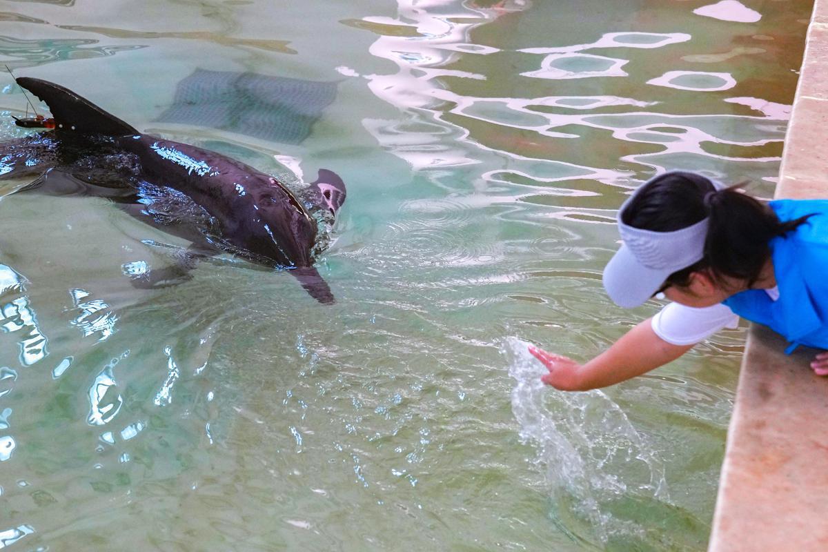 Rough-toothed dolphin Yang Yang swims in a rehabilitation pool at Sanya Haichang Marine Life Rescue Center in Hainan province on June 6. [Photo by Wang Chenglong/For chinadaily.com.cn]