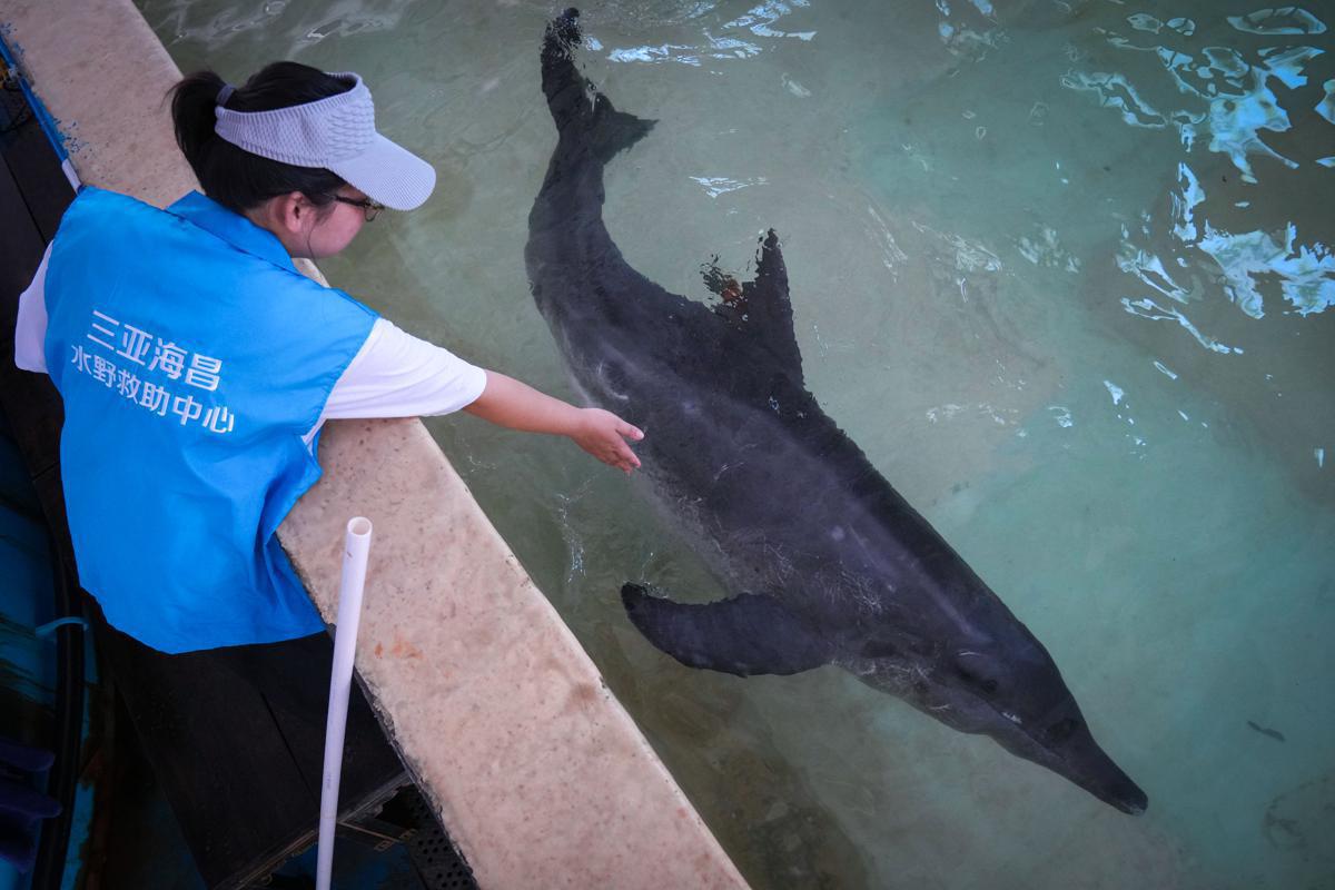 Yang Yang was found stranded on April 24 in Yalong Bay's Qingmei Harbor, weak and unable to swim despite having no visible injuries. The young female dolphin, measuring 2.12 meters long, was rushed to the Sanya Haichang Ocean Park's marine life rescue center for rehabilitation.