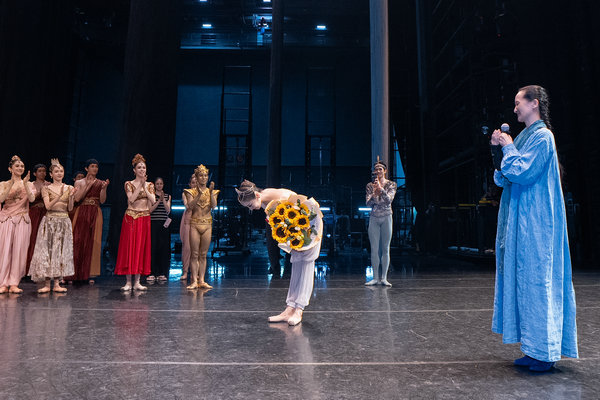 Feng Ying (right), the artistic director and head of the National Ballet of China, announces Xu Yan's promotion as the principal dancer of the troupe. [Photo provided to chinadaily.com.cn]