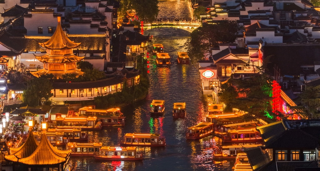 Night view of the Qinhuai River near the Confucius Temple scenic area in Nanjing, Jiangsu province [Photos/IC]