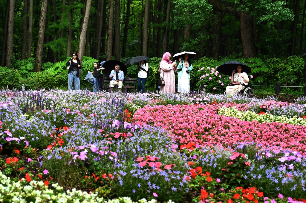 Summertime scenery at Shanghai Gongqing Forest Park looks like a painting
