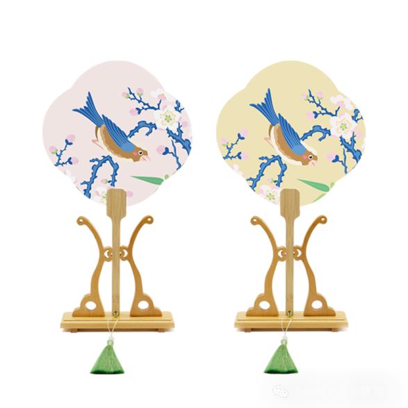 Chinese-style hand fans inspired by a blue-and-white famille-rose vase with flower and bird motifs [Photo/Shandong Museum official WeChat account]