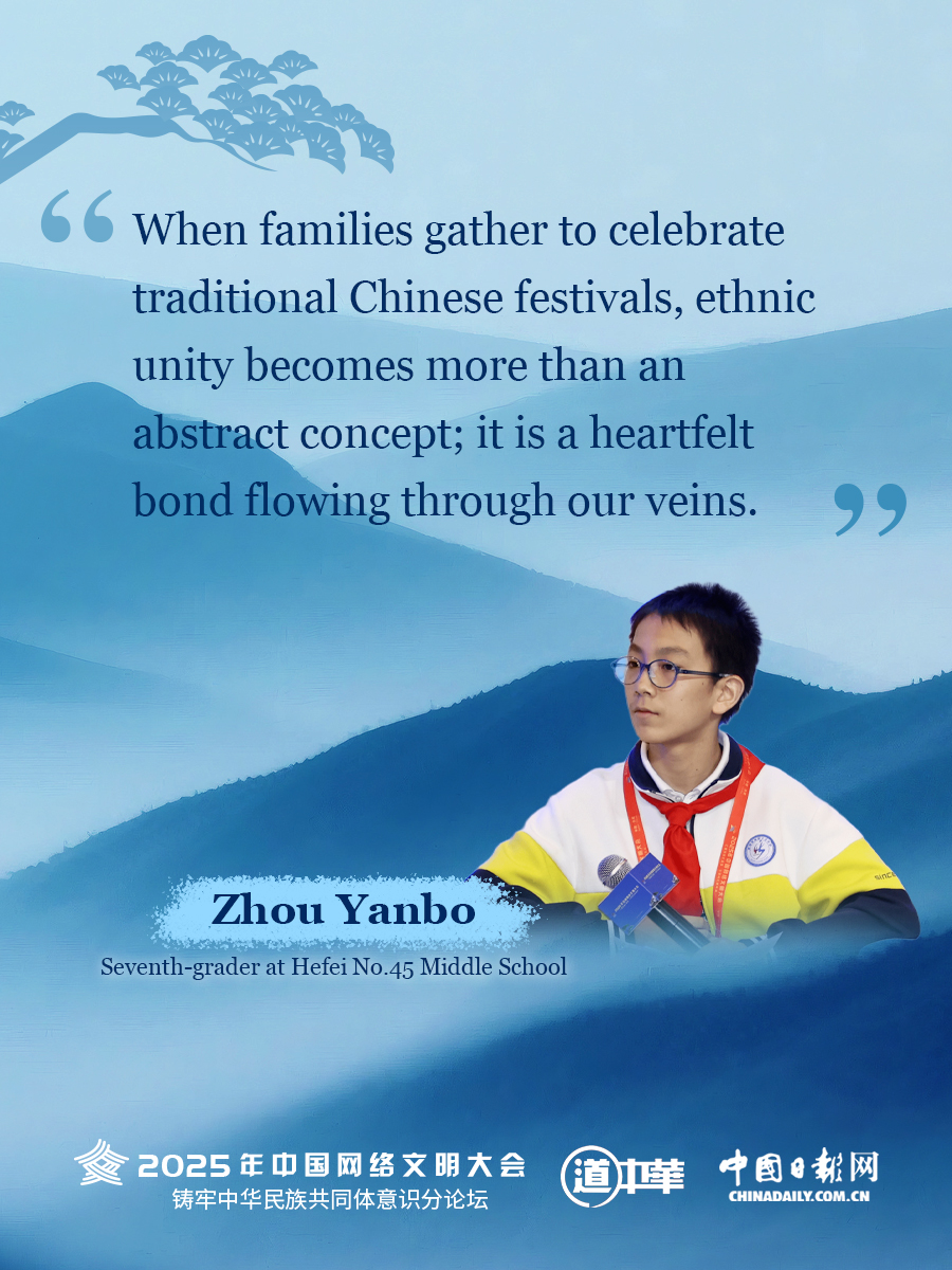 Representatives from diverse sectors offer insights at a forum themed fostering a strong sense of community for the Chinese nation, part of the 2025 China Internet Civilization Conference which opened in Hefei, Anhui province, on Tuesday. [Infographic/chinadaily.com.cn]