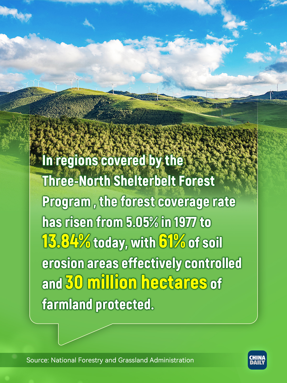 The release particularly highlighted a significant transformation brought about by the Three-North Shelterbelt Forest Program in the past 40 years.