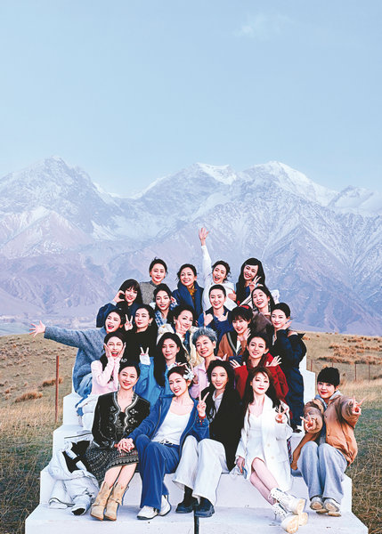 Female participants of the show pose against the backdrop of Kunlun Mountains in Northwest China's Xinjiang Uygur autonomous region.CHINA DAILY