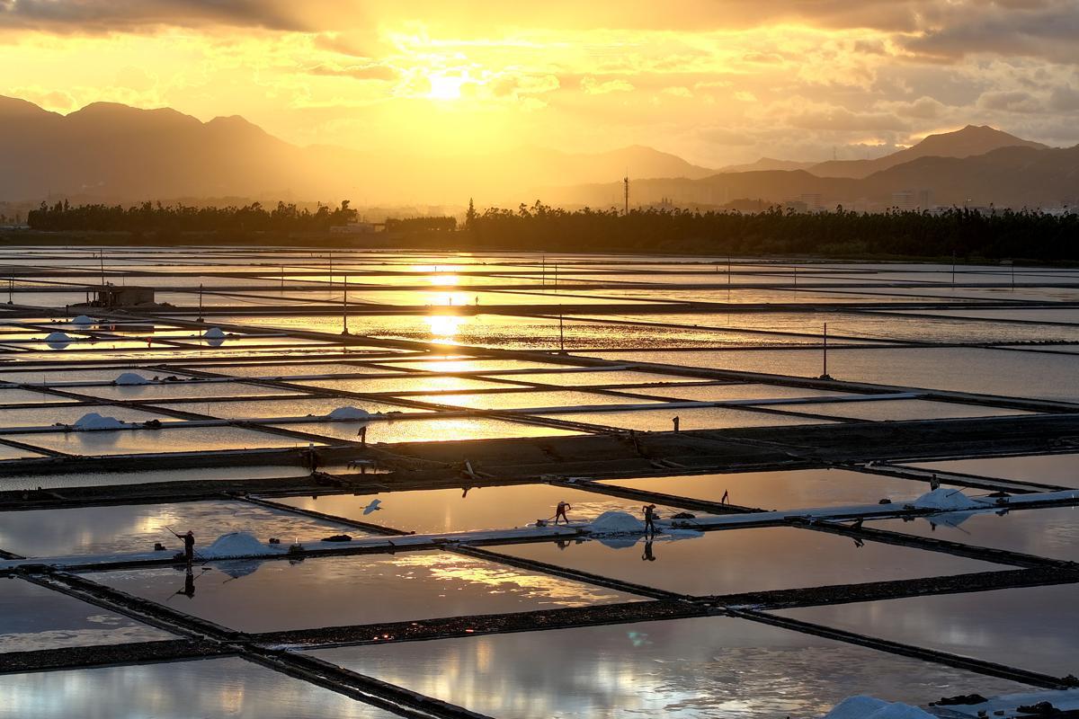 The vibrant colors weave together into a dazzling summer landscape. The farm is the second-largest State-owned salt farm in Fujian, producing 65,000 metric tons of sea salt annually.