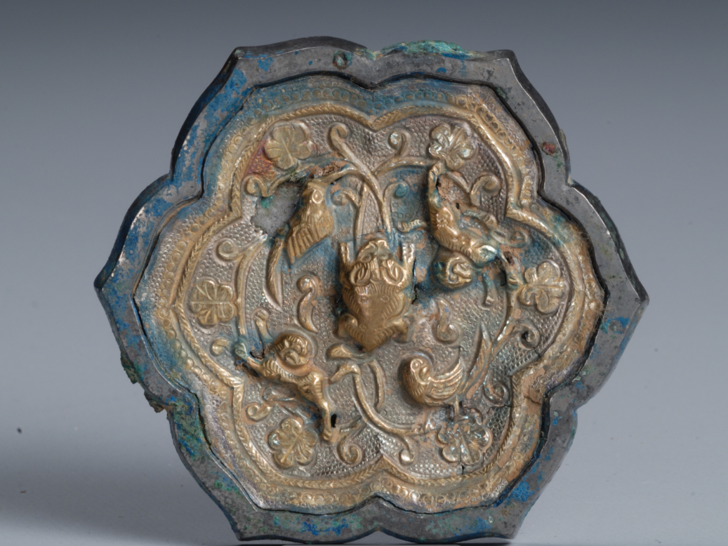 Gilt bronze mirror embedded with silver decorations on its reverse side, Tang Dynasty, from the collection of Shaanxi History Museum [Photo/Fengxian Museum official WeChat account]