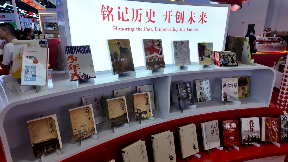 The books displayed at the 31st Beijing International Book Fair commemorating the 80th anniversary of the victory of the Chinese People's War of Resistance Against Japanese Aggression (1931-45) and the World Anti-Fascist War. [Photo by Guo Yanqi/chinadaily.com.cn]