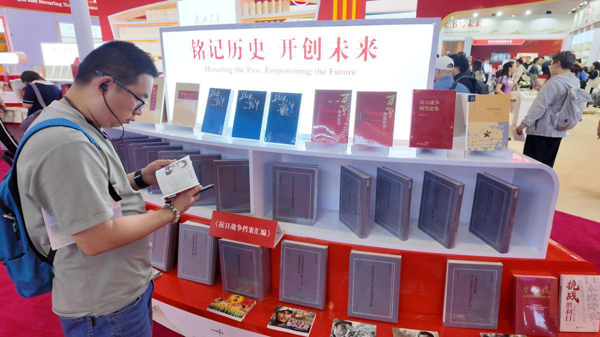 The books displayed at the 31st Beijing International Book Fair commemorating the 80th anniversary of the victory of the Chinese People's War of Resistance Against Japanese Aggression (1931-45) and the World Anti-Fascist War. [Photo by Guo Yanqi/chinadaily.com.cn]