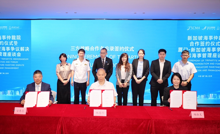 The tripartite memorandum of cooperation was signed by the Xiamen FTZ Administrative Committee, Singapore Chamber of Maritime Arbitration (SCMA), and the Maritime Silk Road International Arbitration Promotion Center. It marks a significant step forward in strengthening maritime collaboration between the two maritime hubs.