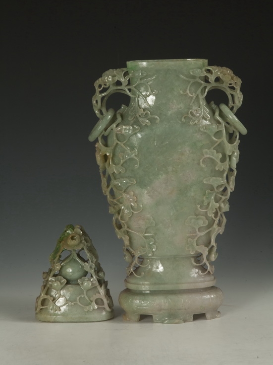 One of the jadeite vases and its lid [Photo/Tianjin Museum official website]
