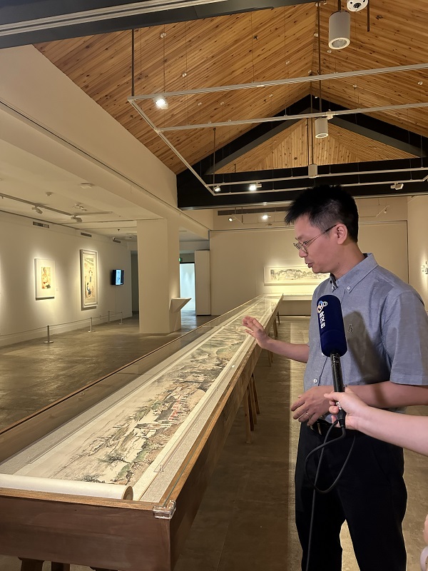 Zhuang Chengheng, curator of the exhibition From Painting School to Academy: The Modern Transformation of Lingnan Chinese Painting, introduces paintings at Wuhan Art Museum. [Photo/provided to chinaservicesinfo.com]