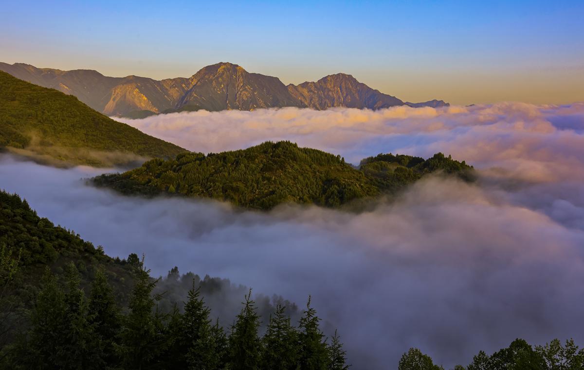 The rolling mountains and verdant grasslands were blanketed by a vast expanse of clouds, creating a breathtaking scene of natural beauty.