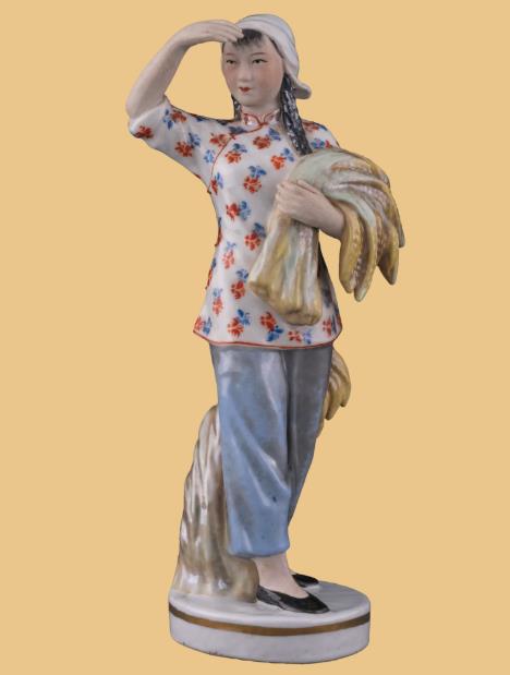 Famille-rose sculpture of a woman reaping rice, Jingdezhen kiln [Photo/Liaoning Provincial Museum official WeChat account]