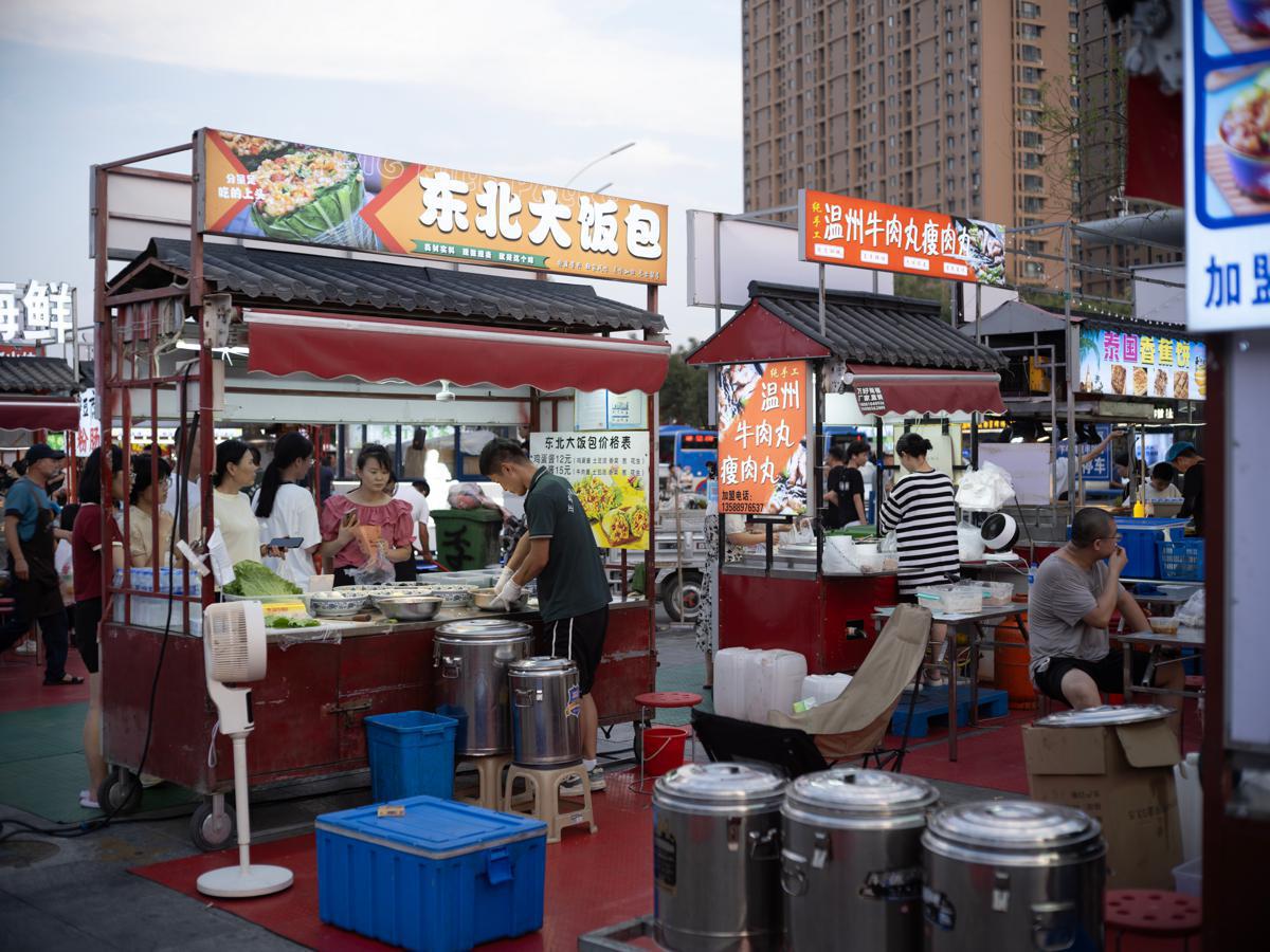 Located near Zhengding Railway Station, close to a small commodities market, the site transforms from a daytime parking lot into a lively "midnight canteen" each evening.