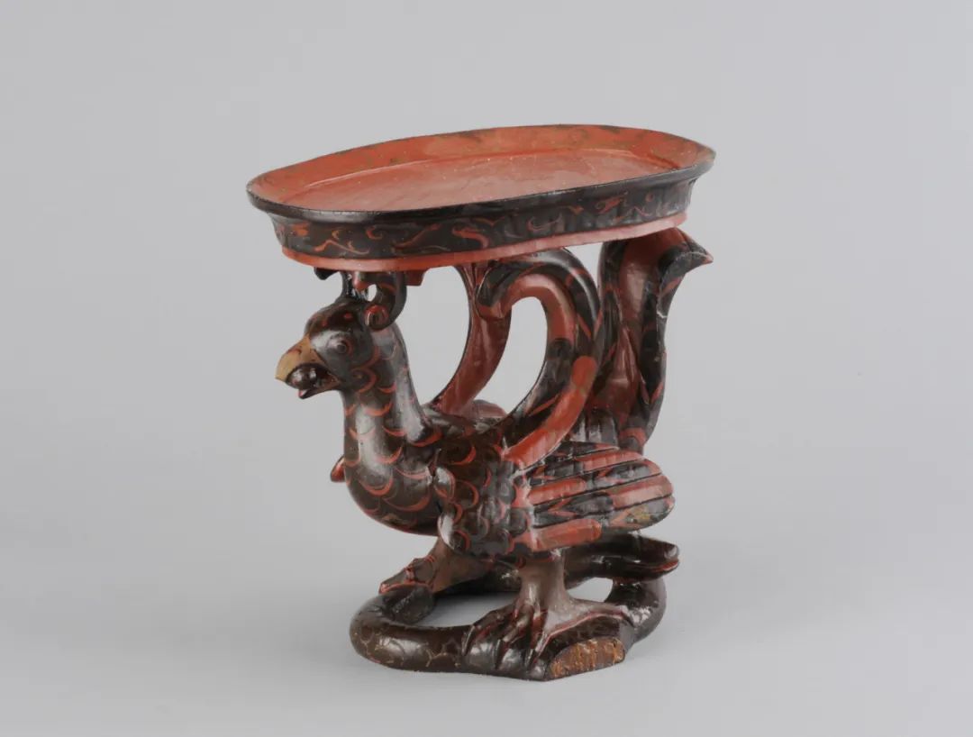 Black-lacquered wooden <em>dou</em> vessel with dragon-and-snake-shaped base