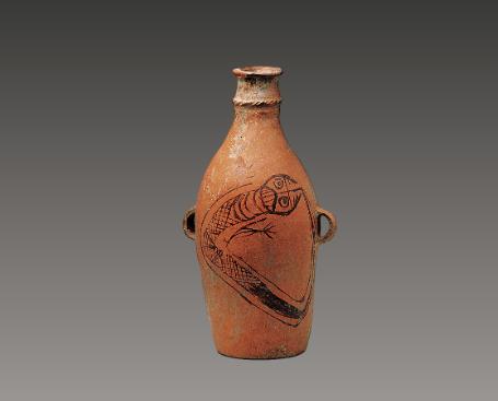 Yangshao culture pottery bottle with black-painted salamander motif
