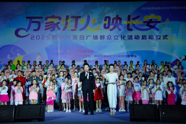 The launch ceremony of the "Ten Thousand Lights Shine on Chang'an" 2025 Xi'an Summer Square Mass Cultural Activity, as an important part of the Xi'an branch of the 2025 Shaanxi Provincial Mass Culture Festival, unfolded with vibrant performances and lively public participation on the evening of July 1 in Xi'an, capital of Northwest China's Shaanxi province.