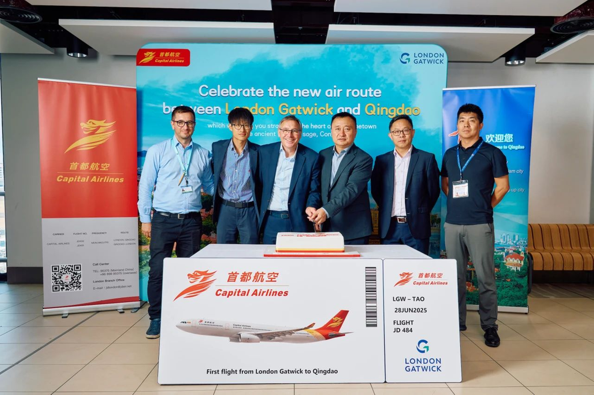 Beijing Capital Airlines inaugurated a direct service between London Gatwick Airport and Qingdao in East China's Shandong province at the London terminal on Saturday.