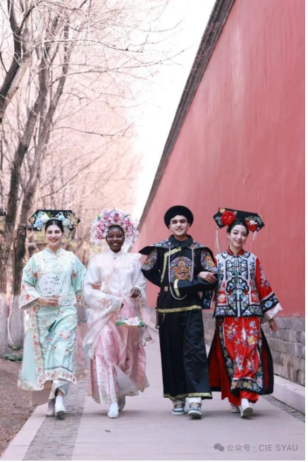 International students don traditional Chinese attire for a photoshoot at the Shenyang Imperial Palace. [Photo provided to chinadaily.com.cn]