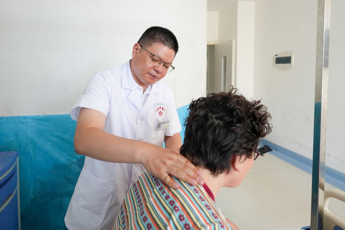 A medical worker from East China's Jiangsu province conducts a health check-up for a patient at a hospital in Ili Kazak autonomous prefecture, Xinjiang Uygur autonomous region, July 6, 2025. [Photo/Xinhua]