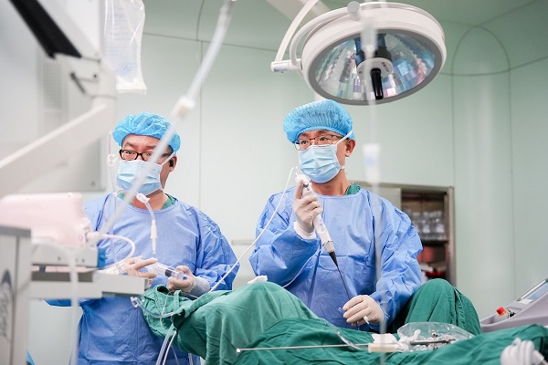 A medical worker from East China's Jiangsu province (right) performs a surgery on a patient at a hospital in Ili Kazak autonomous prefecture, Xinjiang Uygur autonomous region, July 6, 2025. [Photo/Xinhua]