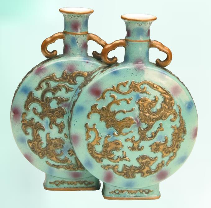 Green-ground double-handled conjoined vase with gilded phoenix motifs, Qing Dynasty (1644-1911), from the collection of Shenyang Imperial Palace Museum [Photo/Jinsha Site Museum official WeChat account]