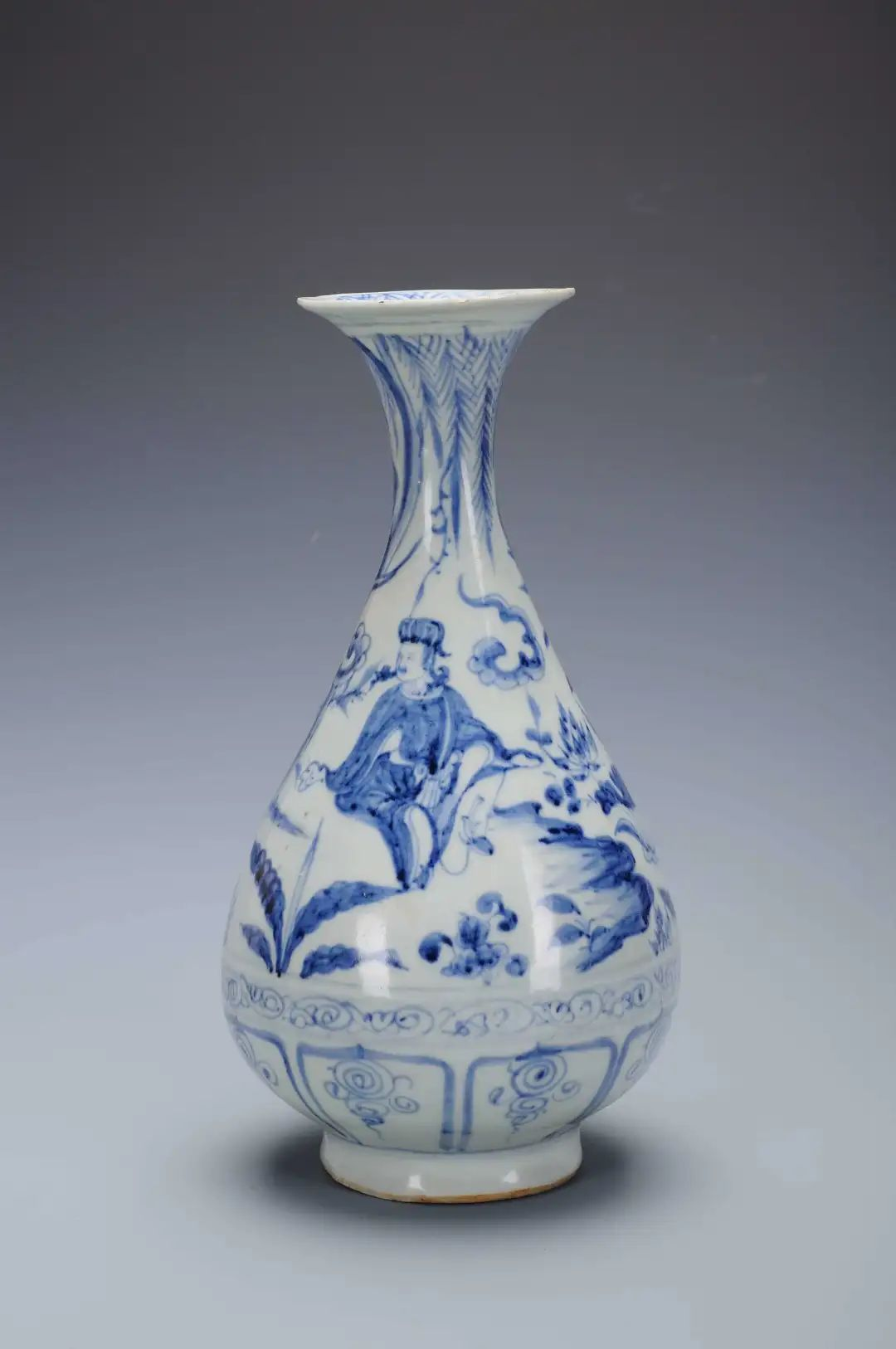 The Yuan Dynasty blue-and-white pear-shaped “yuhuchun” vase with “Zhou Maoshu’s love for lotuses” designs on display in the Shangrao Museum [Photo/Shangrao Museum official WeChat account]