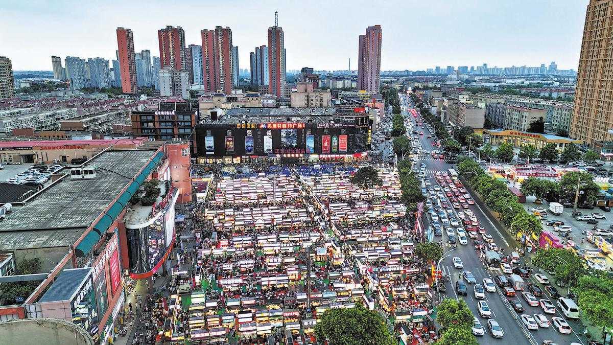 An aerial view of the Zhengding Small Commodities Night Market in Zhengding, Hebei province, on July 6. ZHU XINGXIN/CHINA DAILY