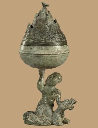 Bronze "mountain censer" with a pedestal in the design of a man riding a beast, Western Han Dynasty (206 BC-AD 24), from the collection of the Palace Museum [Photo/Suzhou Museum official WeChat account]