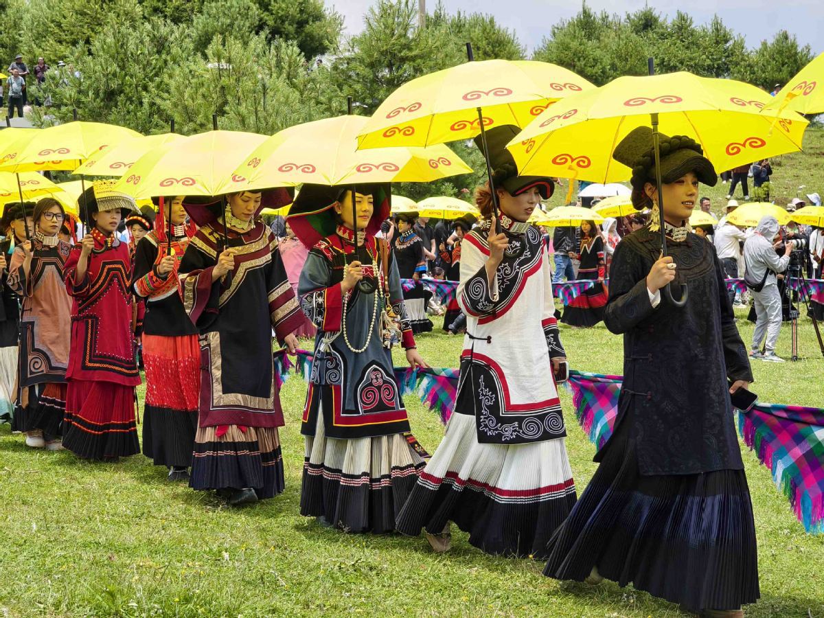 A standout moment came during the Duoluohe performance, when 1,000 women from the Yi and other local ethnic groups, dressed in vibrant traditional attire, descended a hillside in unison. Holding golden oil-paper umbrellas and embroidered handkerchiefs, they moved gracefully in a clockwise circle, creating a visually stunning spectacle.