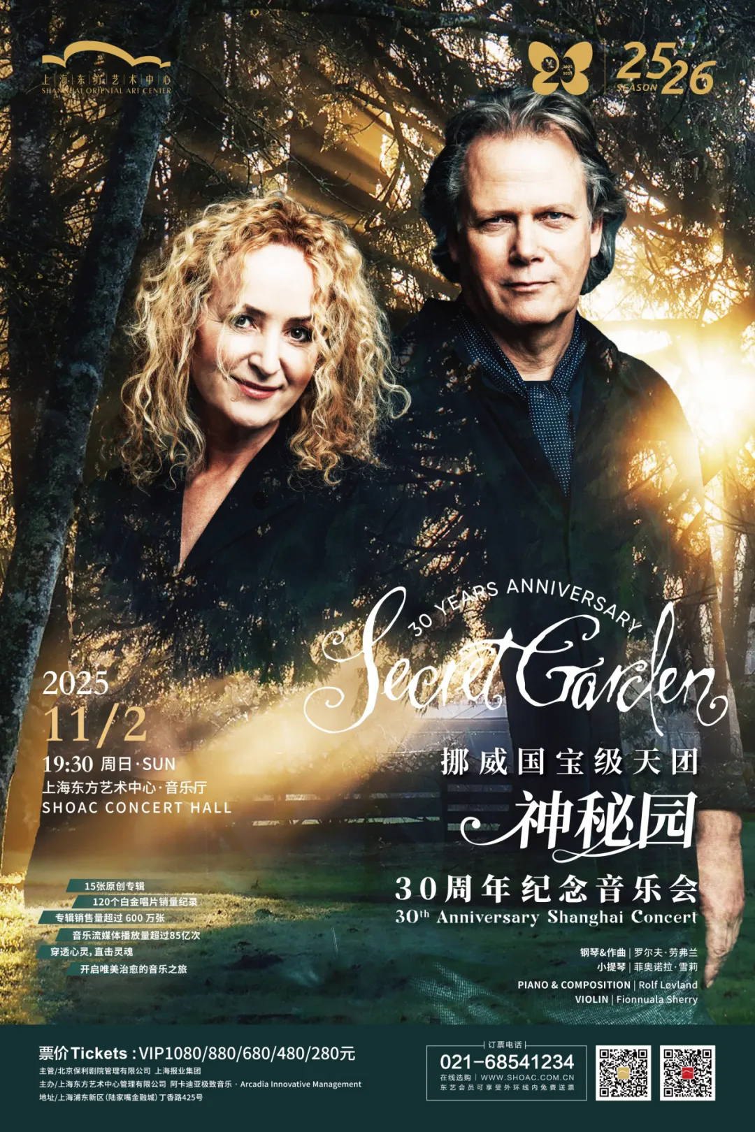 Norwegian crossover legends Secret Garden are back in Shanghai for their 30th anniversary tour! Experience a night of beauty and serenity through their timeless music.