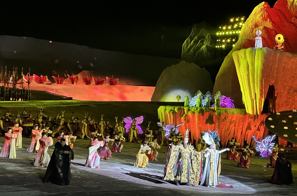 Set against the breathtaking backdrop of the snow-capped Tianshan Mountains, A Thousand-Year Promise to Kunlun features a grand 20,000-square-meter live-action stage in the Nanshan scenic area of Urumqi. It fuses the solemn palaces of the Western Zhou with the dreamlike, mystical realms of the snowy highlands. A 3,000-square-meter multimedia visual array enriches the stage design, artistically presenting the costumes, music and dance of the Western Zhou era. With over 500 performers, the production blends acting with sound, light, electricity and water to create a visually and emotionally stunning theatrical spectacle.