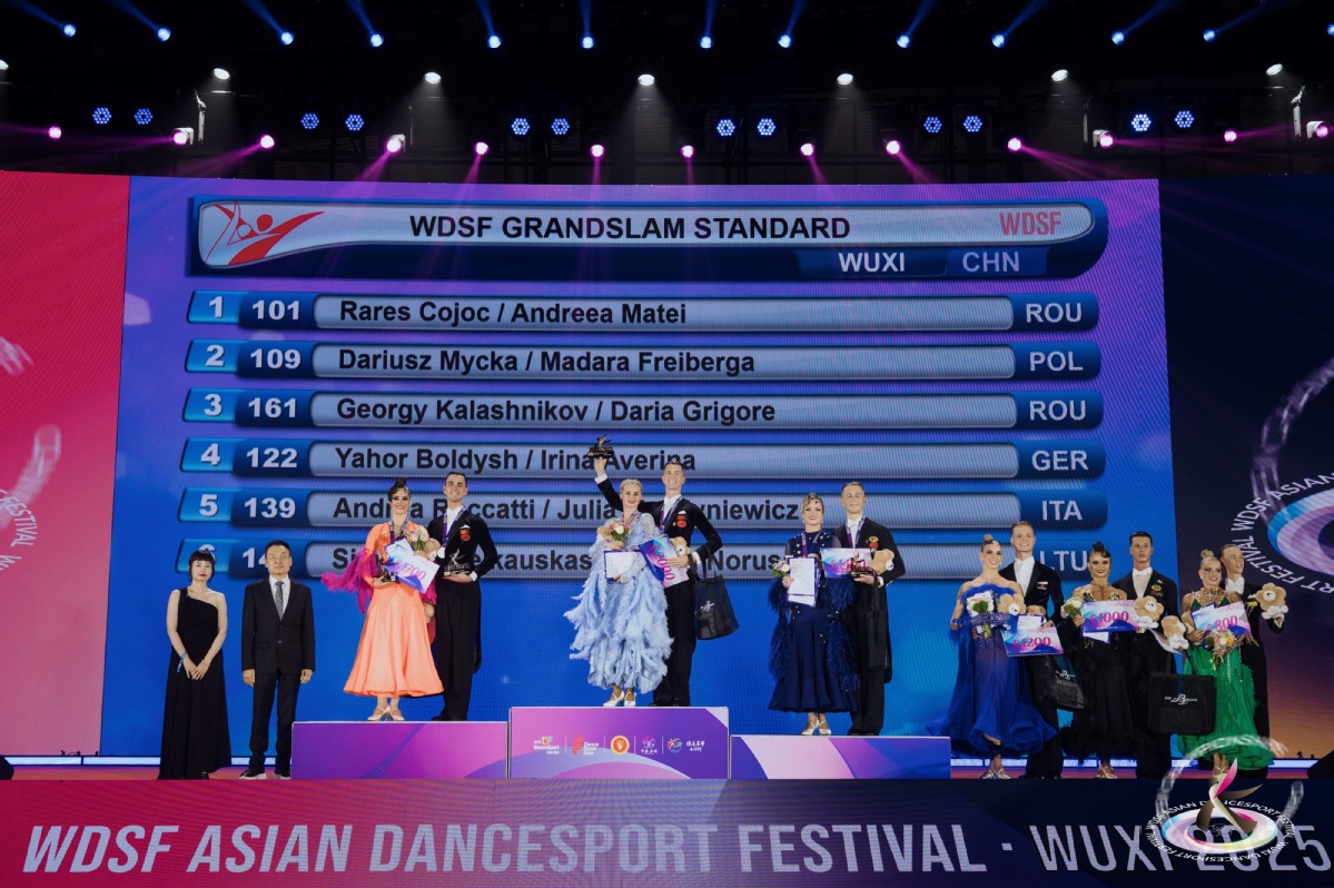 The spotlight on the final day was the WDSF GrandSlam Standard Adult 2025, where six elite pairs delivered stunning performances in a fierce battle for the crown. In the end, Romania's Rares Cojoc and Andreea Matei stood out with their exceptional technique, powerful stage presence, and unique interpretation, becoming the first Romanian couple to win a GrandSlam title.