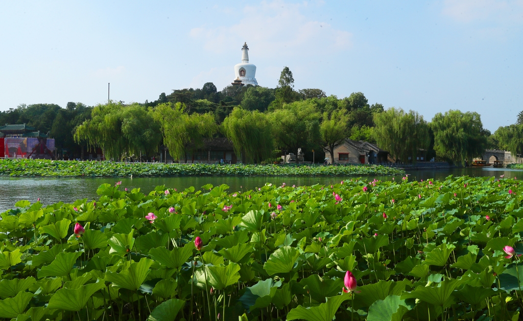 Visitors take a rowboat ride in Beihai Park to admire the blooming lotus flowers. The vibrant flowers offer a refreshing touch to the sweltering summer.
