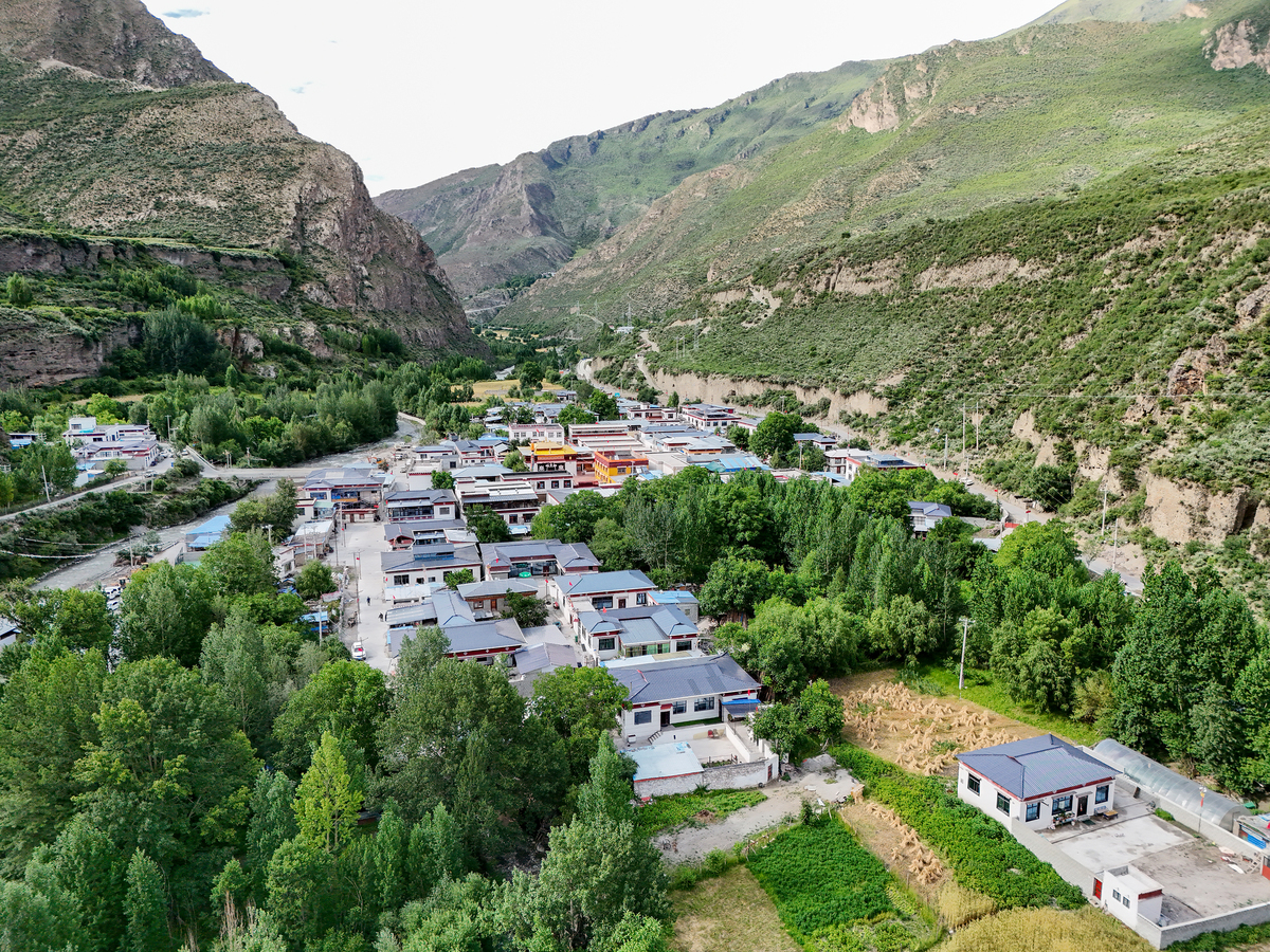 An aerial drone photo taken on July 21, 2025 shows a view of Lnadingxooi village, Zhomda township, Nang county of Southwest China's Xizang autonomous region. [Photo/Xinhua]