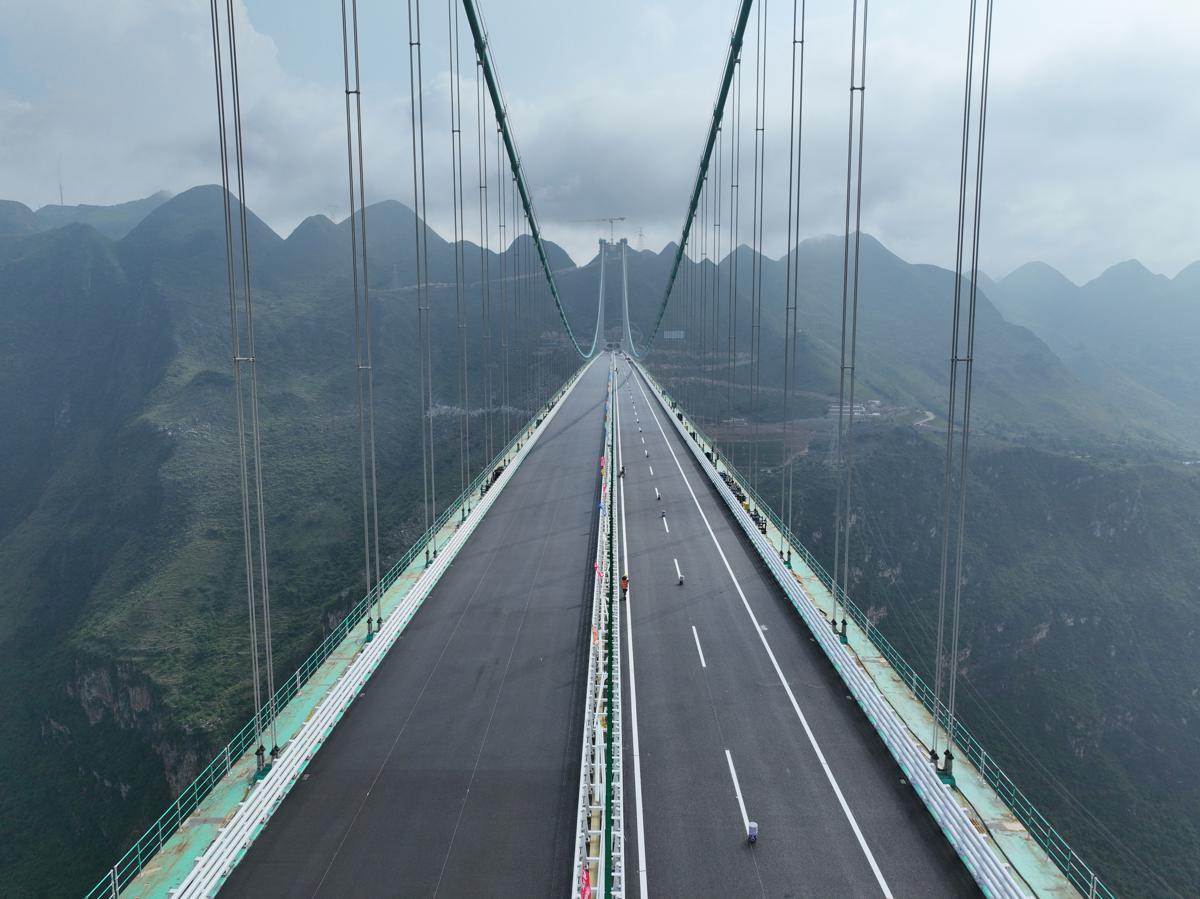 Now that its deck paving is complete, the world's highest bridge is on track to open in Southwest China's Guizhou province by the end of September.