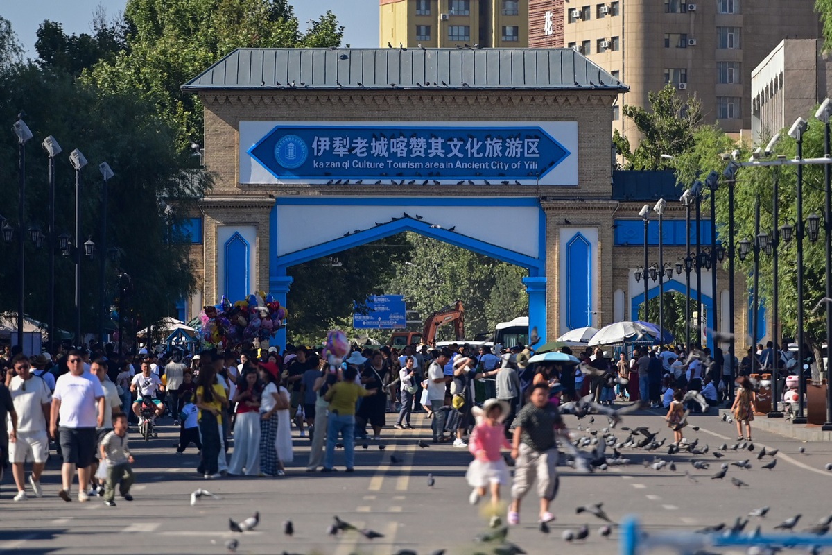Tourists visit Kazanqi culture tourism area in Yining city, Ili Kazak autonomous prefecture, Northwest China's Xinjiang Uygur autonomous region, July 23, 2025. [Photo/Xinhua]