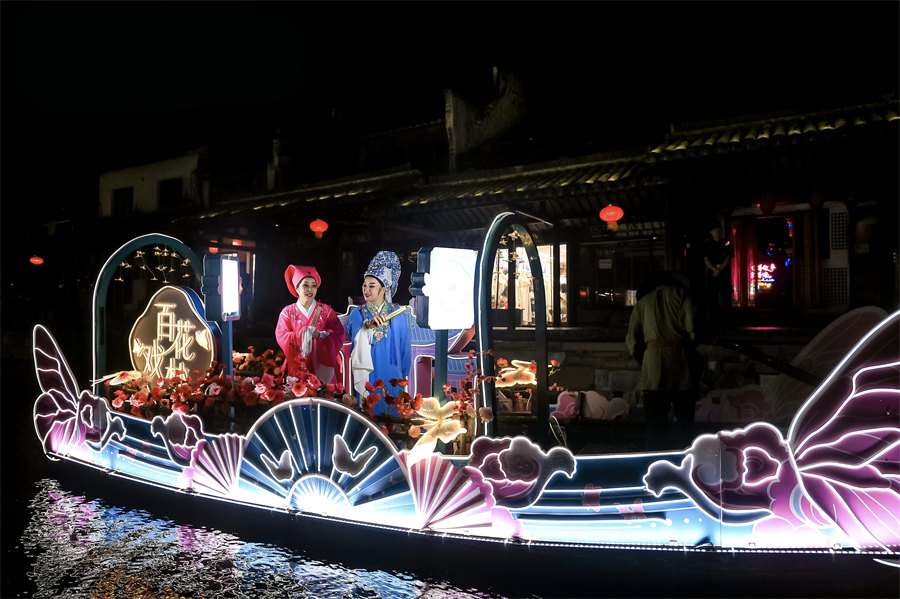 parade is staged in Xitang ancient town, Jiaxing city, Zhejiang province, on Friday. [Photo provided to chinadaily.com.cn]
