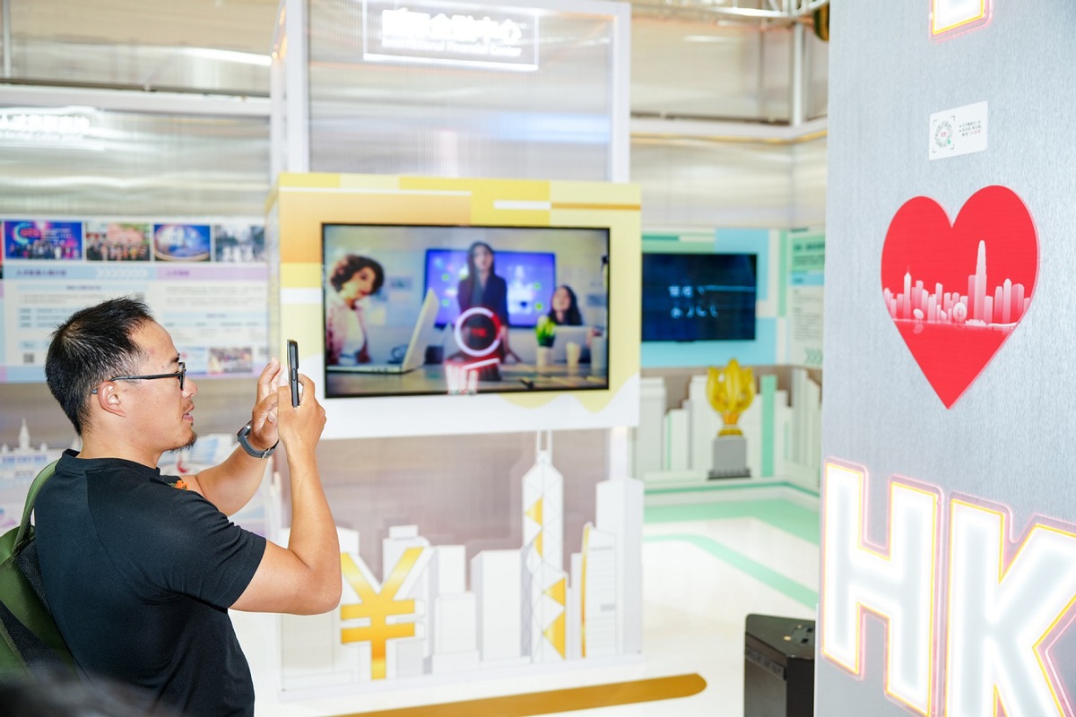 A visitor takes a photo at a Hong Kong-themed exhibition in Urumqi, Northwest China's Xinjiang Uygur autonomous region, July 28, 2025. The exhibition kicked off here on Monday. [Photo/Xinhua]