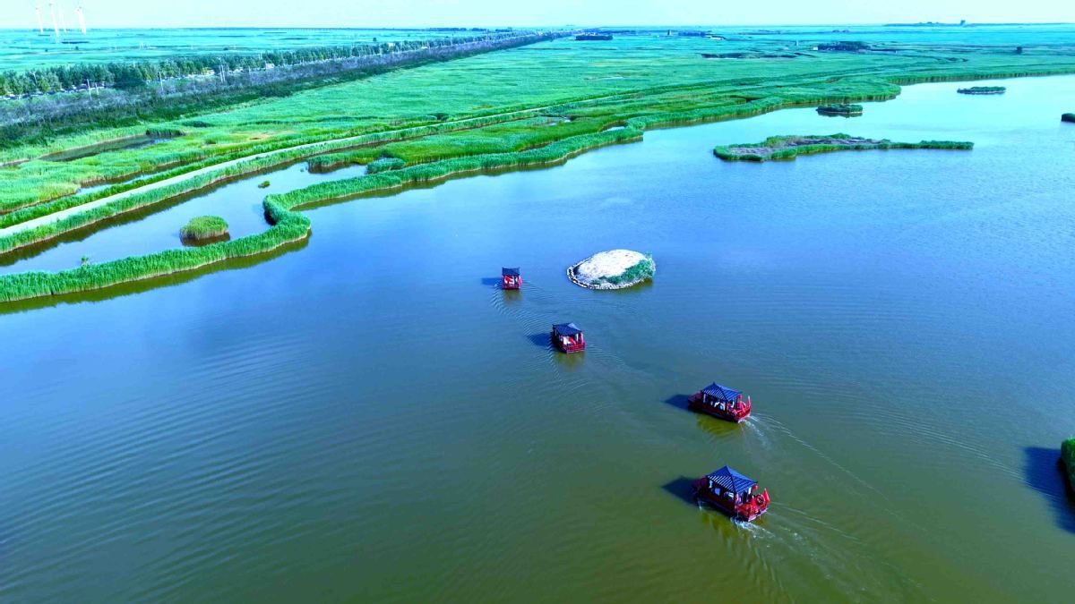 Visitors seek respite from the sweltering summer heat at the Dongfang Huadicheng wetland park in Jinzhou, Liaoning province. [Photo provided to chinadaily.com.cn]
