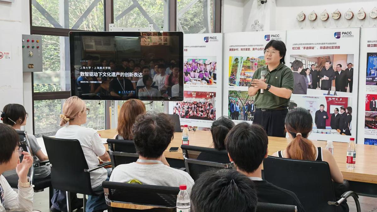 Student participants at the first "When AI Meets Intangible Cultural Heritage" study camp visited the Shanghai Public Art Coordination Innovation Center, technology enterprises, the Shanghai Museum, and the World Artificial Intelligence Conference 2025 on Sunday. [Photo provided to chinadaily.com.cn]