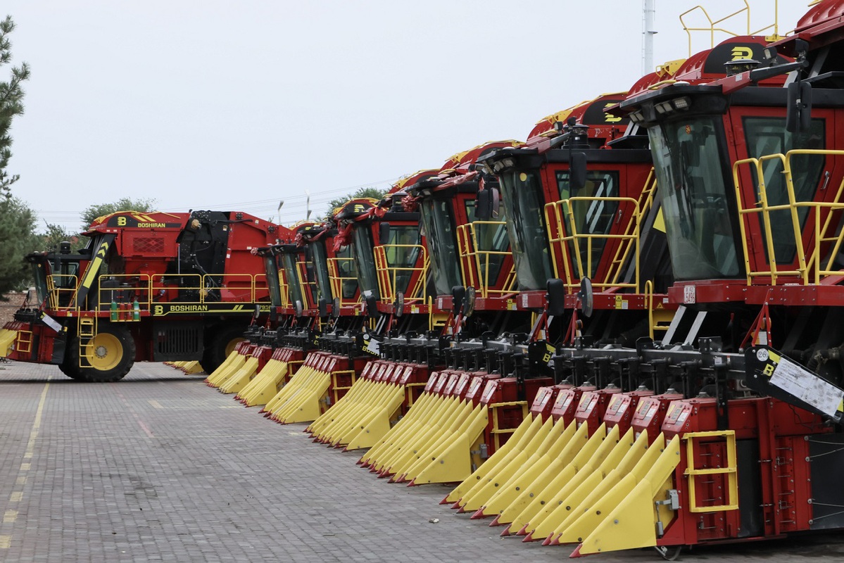 This photo taken on July 28, 2025 shows cotton harvesters at Xinjiang Boshiran Intelligent Agricultural Machinery Co Ltd in Wusu city, Northwest China's Xinjiang Uygur autonomous region. [Photo/Xinhua]