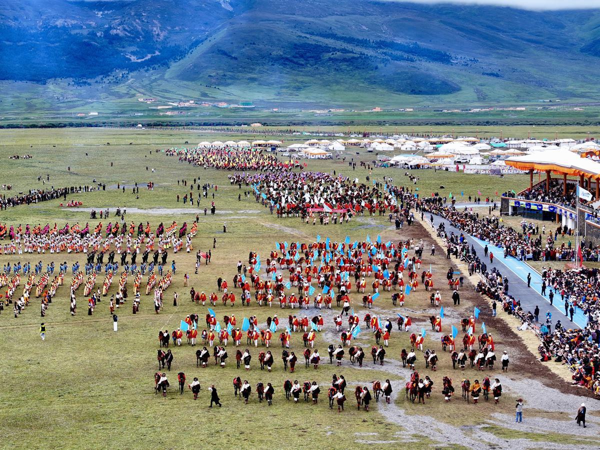 Tibetan herdsmen gather at a horse racing festival in Litang county, Sichuan province, on Wednesday. They are ready to perform traditional equestrian stunts during the event. [Photo provided to chinadaily.com.cn]