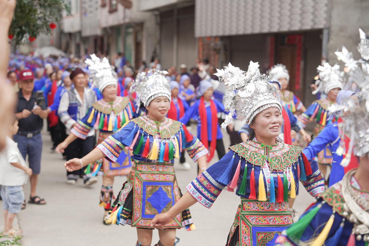The costume parade transformed into a flowing tapestry of colors weaving through the village. The drum tower ceremony was solemn and dignified, carrying forward ancient ethnic beliefs. Singing and dancing performances continuously heated the atmosphere.