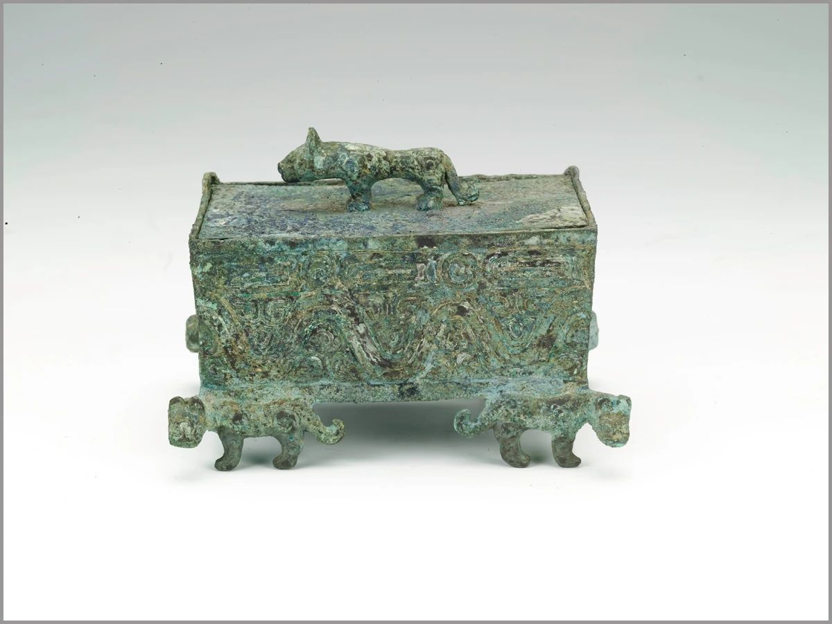 Square bronze box with tiger-shaped feet and wave motifs [Photo/Shanxi Museum official WeChat account]