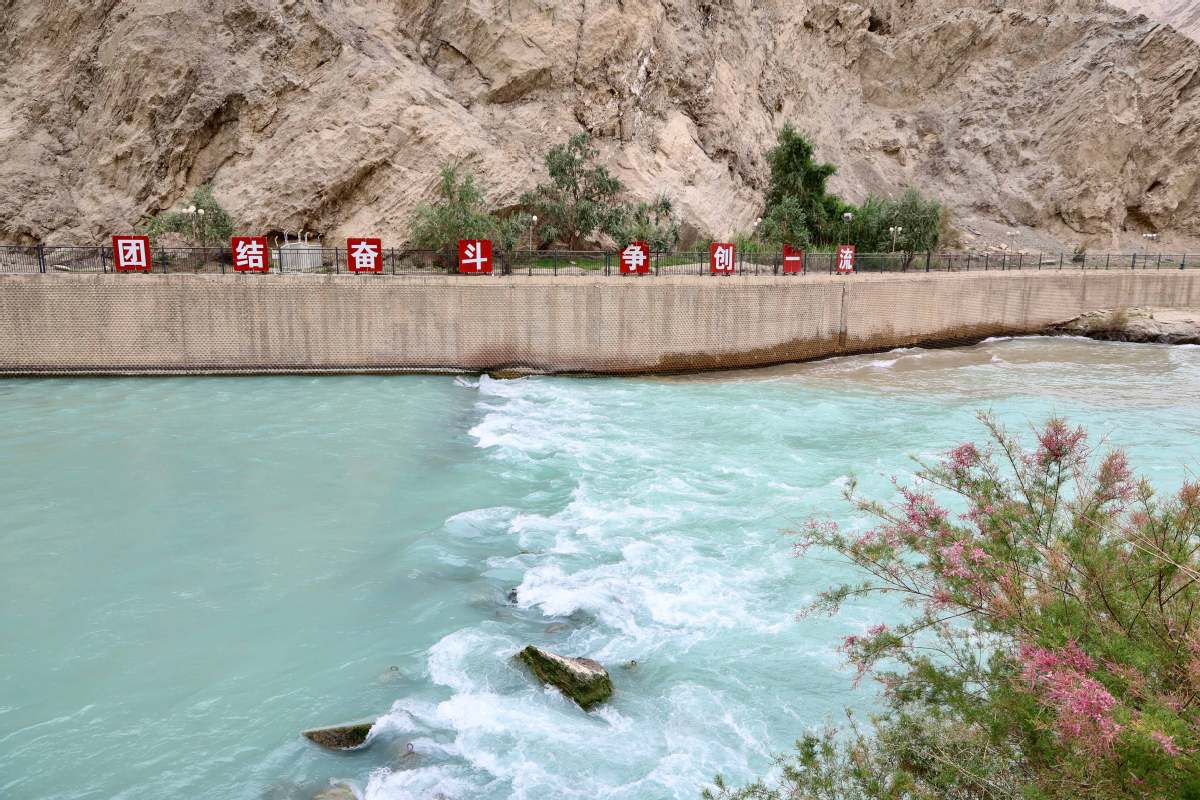 A view of the Wuluwati Water Conservancy Project in Hotan, Xinjiang Uygur autonomous region, on Aug 6, 2025. Located in the middle reaches of the Karakax River, the Wuluwati Water Conservancy Project is said to serve as a comprehensive water conservancy project with benefits encompassing irrigation, flood control, power generation, water supply, and ecological improvement. It plays a pivotal role in controlling the Hotan River's western tributary, the Karakax River basin. [Photo by Li Ziyi/chinadaily.com.cn]