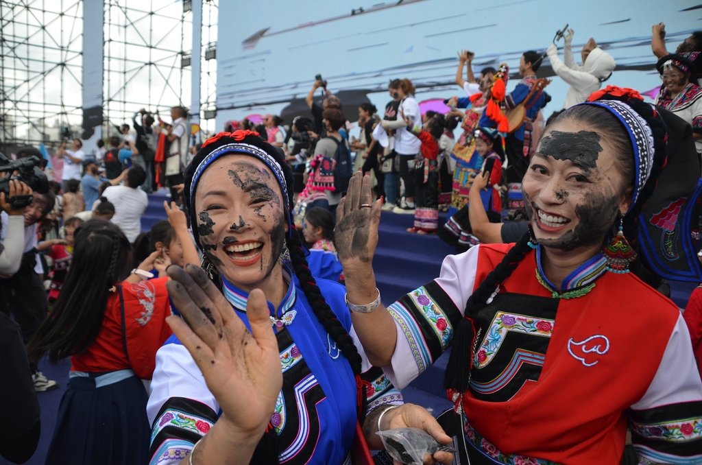 The Hualian Festival is a traditional celebration of the Yi ethnic group in Qiubei county, Yunnan province. Its name comes from an ancient legend in which ancestors smeared their faces with soot from cooking pots to ward off evil spirits. Today, people use black pigment made from glutinous rice straw ash to smear each other during the festival, expressing the heartfelt blessing: “A blackened body brings lifelong good fortune.”